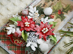 И, наконец, в блоге ART UP в задании декабря "Happy winter". Из обязательных элементов я использовала оба: чипборд в виде снежинок и поздравительной надписи и краски - белый акрил для имитации снега и брызги коричневым акрилом.